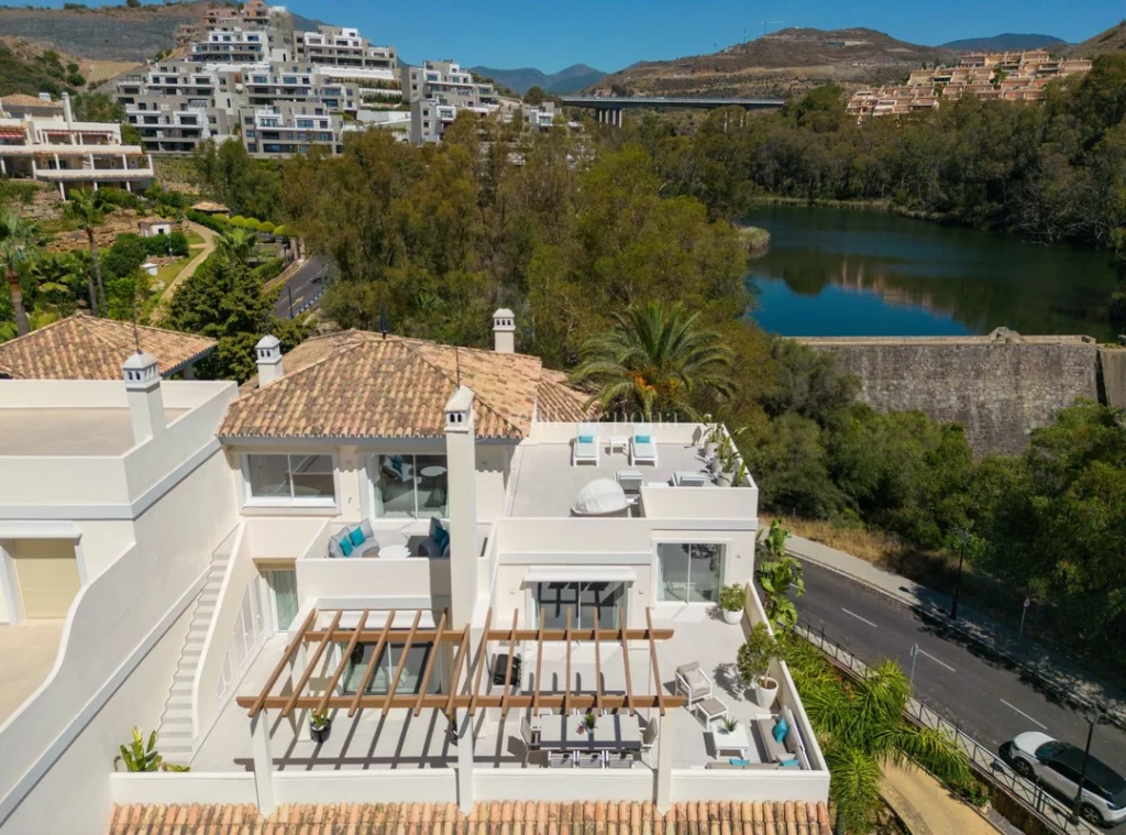 This luxury corner penthouse, is a duplex with spacious outdoor areas and views towards the sea, the lake, and the La Concha mountain in Palacetes los Belvederes. Highly secure with private lif t access from the garage and gated stairs giving total privacy and security.