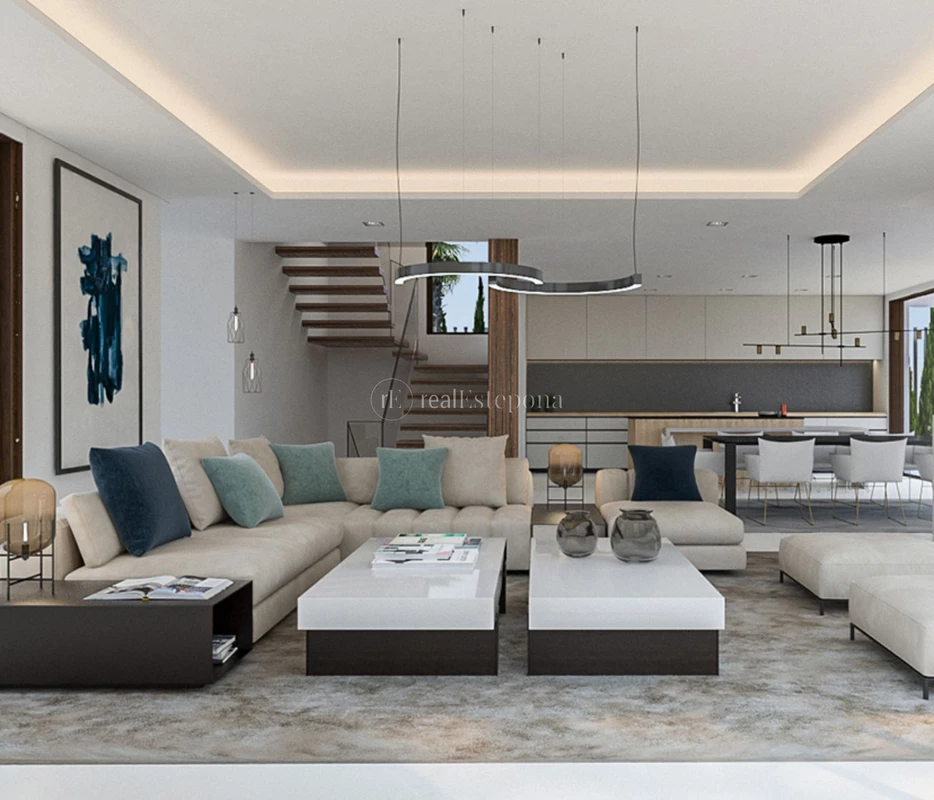 Upon entering the villa you will be impressed by its opulence and meticulous design. The expansive living room boasts high ceilings, allowing an abundance of natural light to illuminate the interior.
