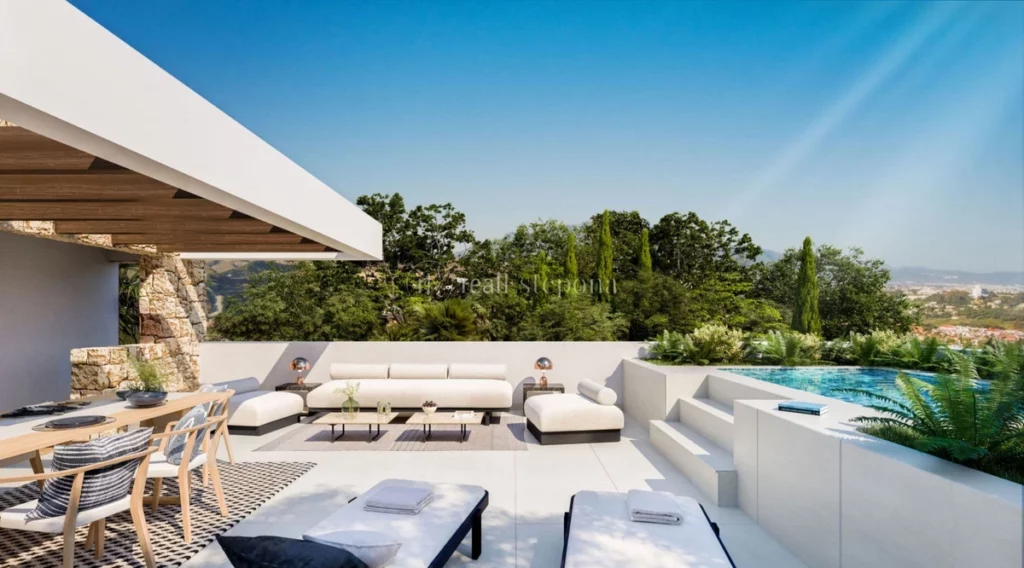 The villa consists of 4 generous bedrooms. The master suite has a large walk-in wardrobe, en-suite bathroom and a spacious dressing room. The rest of the bedrooms are also generously sized, with en-suite bathrooms and direct access to the terraces.