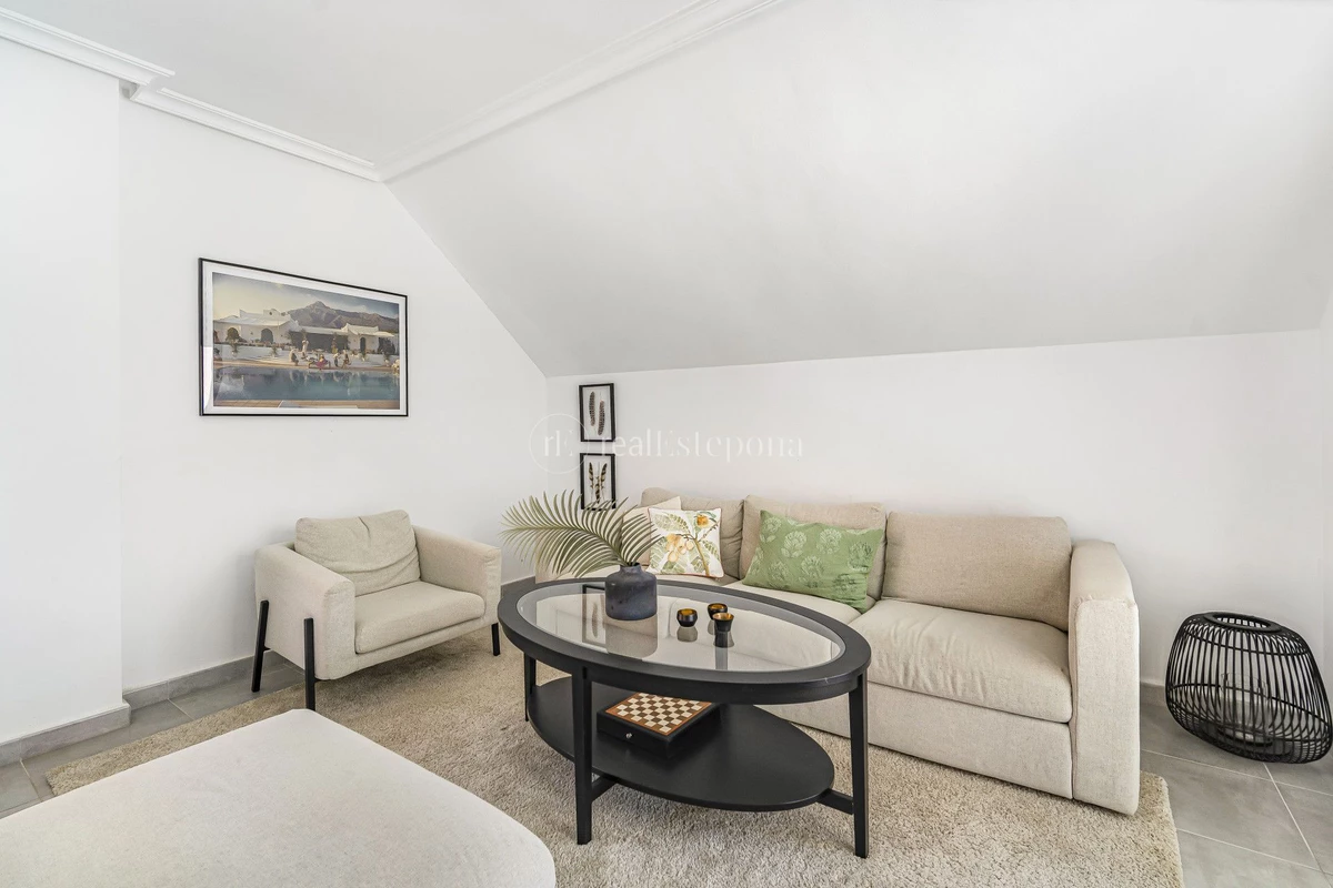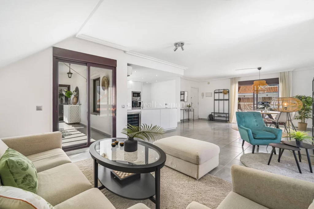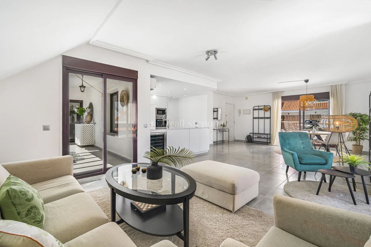 Unique Duplex Penthouse in the popular urbanization La Maestranza centrally located in Nueva Andalucia. The apartment is tastefully renovated to a very high standard and with 3 terraces that make sure you can enjoy the sun all day long.