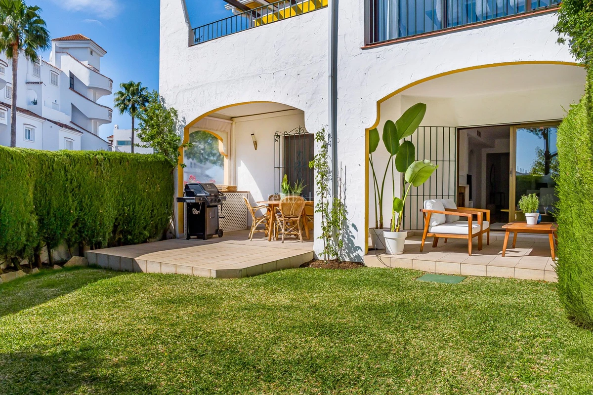 Located in the sought-after community of Cerro Blanco, this spacious corner ground-floor apartment offers a rare combination of privacy, outdoor living, and an unbeatable location in Nueva Andalucía.