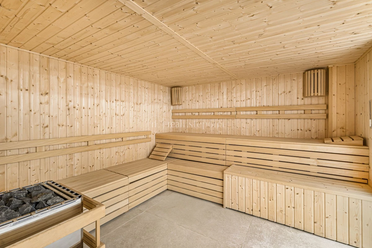 Magnificent six bedroom Villa located in Hacienda Las Chapas, Marbella. This property is close to amenities, golf courses and the beach, with only a short ten minute drive to Marbella. The villa boasts spectacular sea views from both the ground floor and first floor; the entrance level has a spacious open plan living and dining room with built in fireplace, lounge and access to the terrace, garden and private swimming pool; fully fitted kitchen; guest suite; and a guest toilet. The first floor has the master suite with walk in closet and spacious terrace with beautiful views to the sea and pool; four guest suites and a terrace with wonderful sea views. The lower level of the property leads to the gym and spa, complete with bathroom, sauna and Hamam. There is also a storage room; laundry room; and lounge area on this level. Other features include hot and cold air conditioning, double car port, fitted wardrobes and solar panels. There is also an approved project to add an independent guest house of 130m2 with three bedrooms and bathrooms.