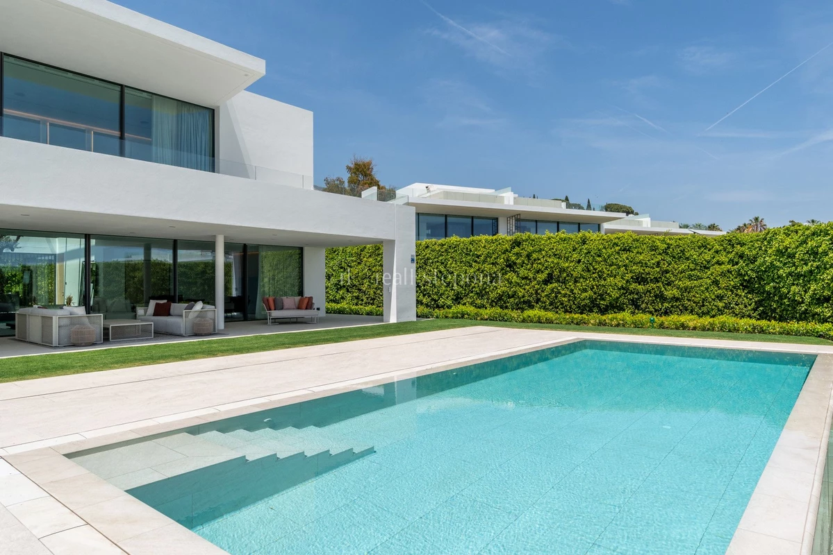 Discover this luxurious new villa on Marbella’s prestigious Golden Mile, featuring 1,038 m² of modern architecture and lavish interiors. With five bedrooms, each with an en-suite, and expansive terraces spanning 350 m², this home epitomizes luxury living.