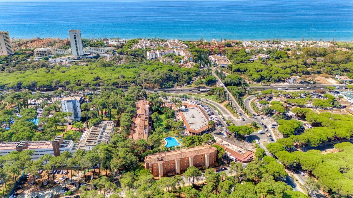 Bright and spacious two bedroom, west facing ground floor apartment located in the prestigious Pino Golf De Don Carlos community, Elviria. This lovely home enjoys a private garden, air conditioning, and direct access to a large communal swimming pool surrounded by beautifully maintained gardens, as well as a communal garage with one private parking space. The master bedroom benefits from an en suite bathroom, while the location is within walking distance to shops, bars, restaurants, the beach and the famous Nikki Beach, and just a short distance to golf courses and excellent schools. With a touristic license already in place this is a fantastic investment opportunity.