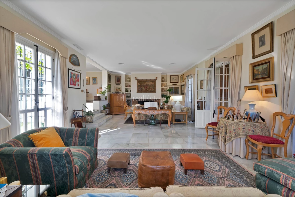 Located in one of Marbella’s most sought-after areas, this magnificent detached villa sits on a generous corner plot of 1,755 m² in the prestigious Avenida del Generalife 28. South-southwest facing, it boasts breathtaking views of the sea and Gibraltar. The property enjoys a strategic location that offers both privacy and tranquillity, while being perfectly connected to all amenities, international schools, renowned golf courses, and the glamour of Puerto Banús.
