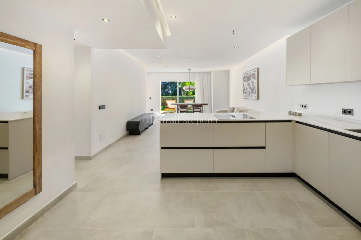 The apartment boasts generous living spaces filled with natural light, all finished to a high contemporary standard. The open-plan living and dining area flows effortlessly onto a spacious private terrace, which provides direct access to the garden—an ideal setting for outdoor dining, relaxing, or enjoying Marbella’s year-round Mediterranean climate.