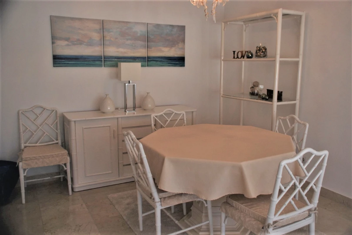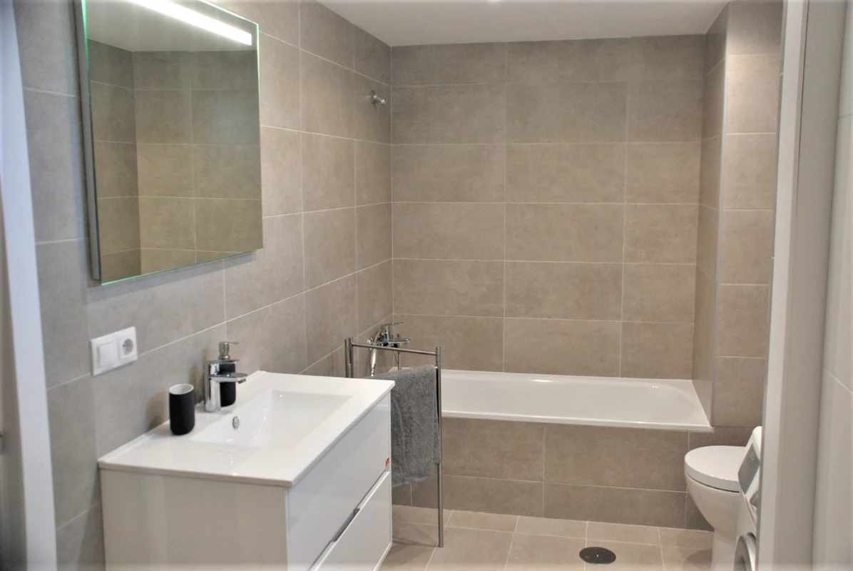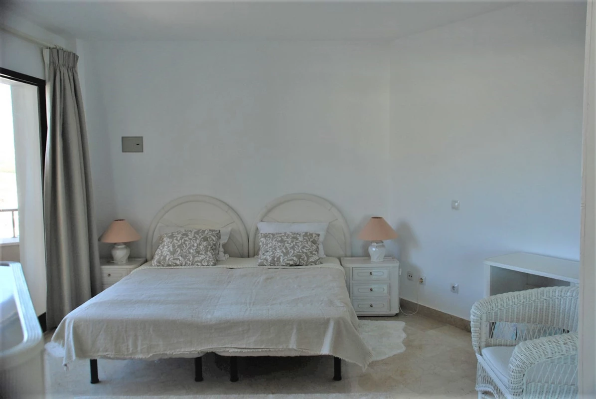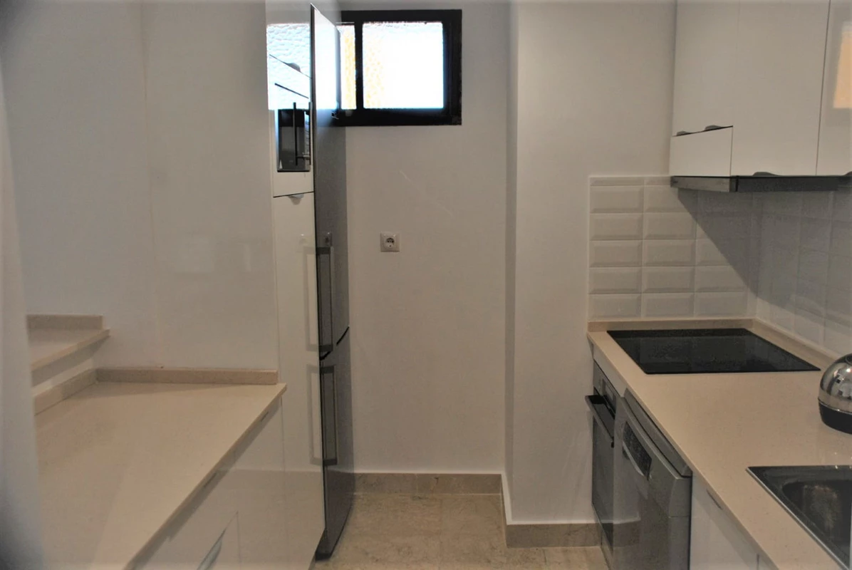 A very nice totally new reformed 2 bed apartment with 2 bathrooms. The apartment is totally new reformed with new electricity and new plumbing. Beautiful white kitchen with Granit worktop and all new appliances from Bosch. One of the bathroom with walk in shower and the other one with bathtub. there are 2 terraces, one of them with glas curtains. The apartment is ideally located, just in front of the golf and country club Atalaya and not far away from a small shopping center.