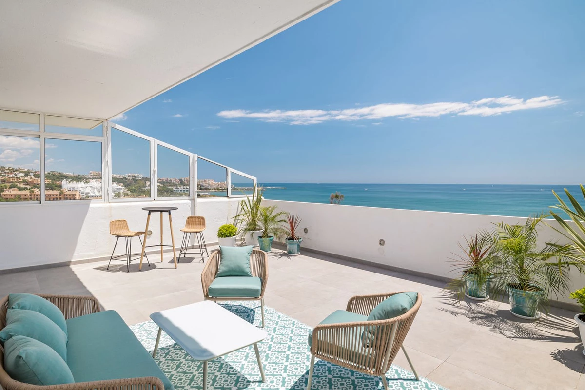 Fully renovated 3 bedroom duplex penthouse front line beach and located on the 9th floor with spectacular unbeaten and panoramic views to the Mediterranean and the coast. South facing. Direct access to the beach and walking distance to the port and town center of Estepona.