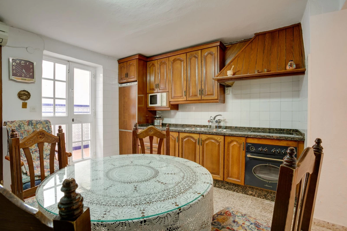 As you walk in from the beautiful typical Spanish street with its flower pots, you will find a large living area, a bathroom, a kitchen and a utility room.