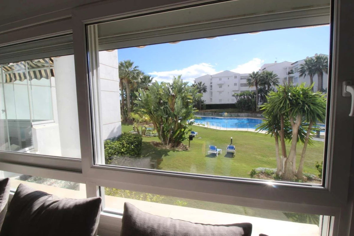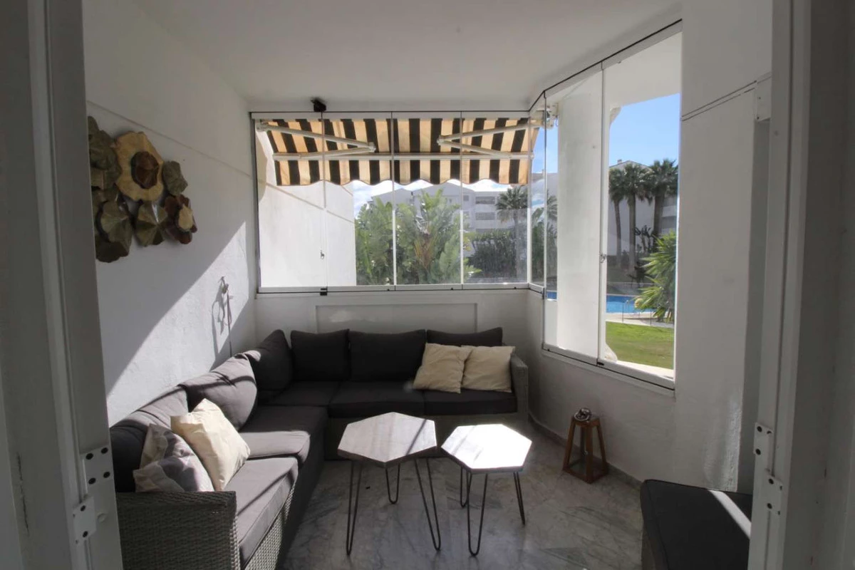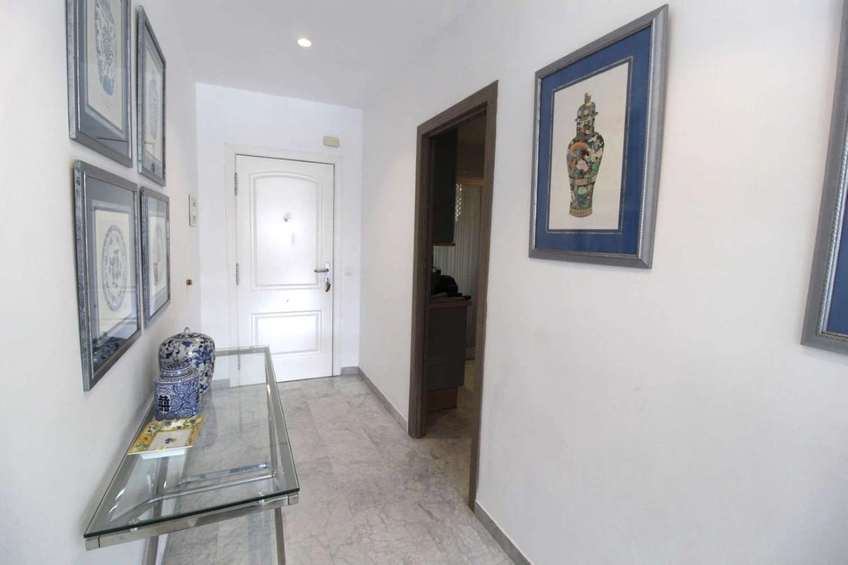 Puerto Banus 1st line beach development: Beautiful duplex apartment with 3 bedrooms 3 en-suite bathrooms plus a guest toilet; On the main floor the large living-dining room with lots of light, and access to a little terrace with beautiful views of the pool and the sea, which has been glazed for opening or closing as best suits: kitchen with utility room and main bedroom with ensuite bathroom. as well as guest toilet. On the lower floor two bedrooms with ensuite bathrooms respectively and also they also share a small living room. The duplex is south west which is the best position regarding the sun. It has electric shutters / aa / climate in the main floor; Private access to the promenade and the sea through the large tropical gardens with swimming pools. 24 hour security. The apartment is ideally situated to explore Puerto Banus on foot. The Garage is included.