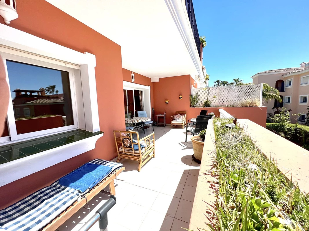 This is a stunning two-bedroom, two-bathroom apartment located in the highly sought-after Park Beach complex in Cancelada, Estepona.