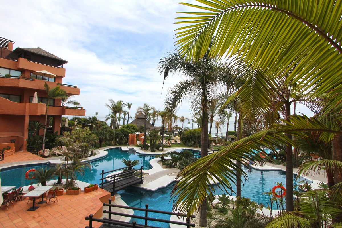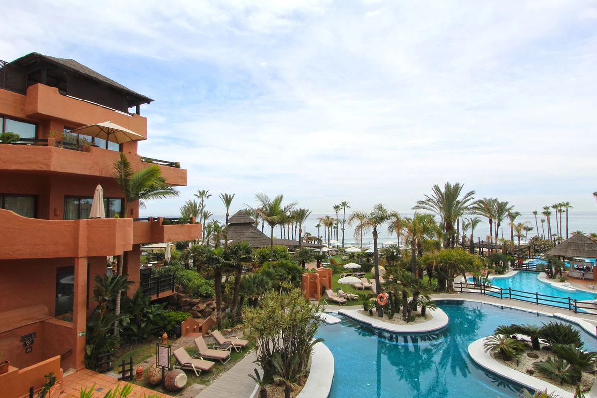 Charming apartment studio, southeast facing, in New Golden Mile, Estepona. This property located on the beachfront, in a prestigious hotel Kempinski, it has a wonderful Mediterranean sea view. Open plan living and dining area with patio doors leading to the the private terrace with views to the garden and pool. Other features include hot and cold air conditioning, underfloor heating in the bathroom, fitted wardrobes, marble floors, alarm, gym, sauna, restaurants, heated outdoor pool and children's pool.