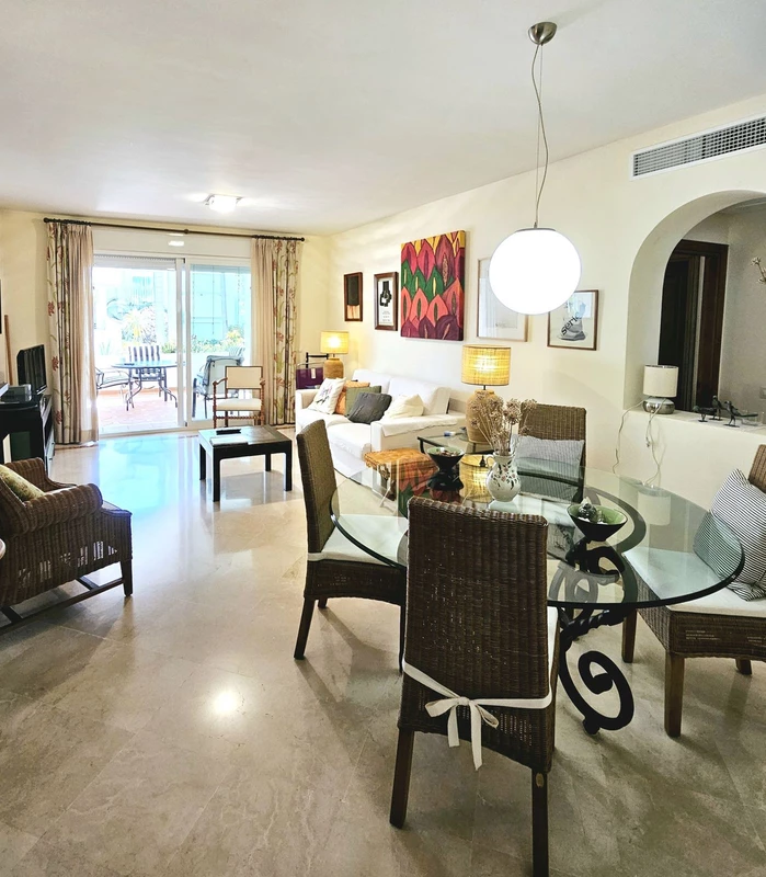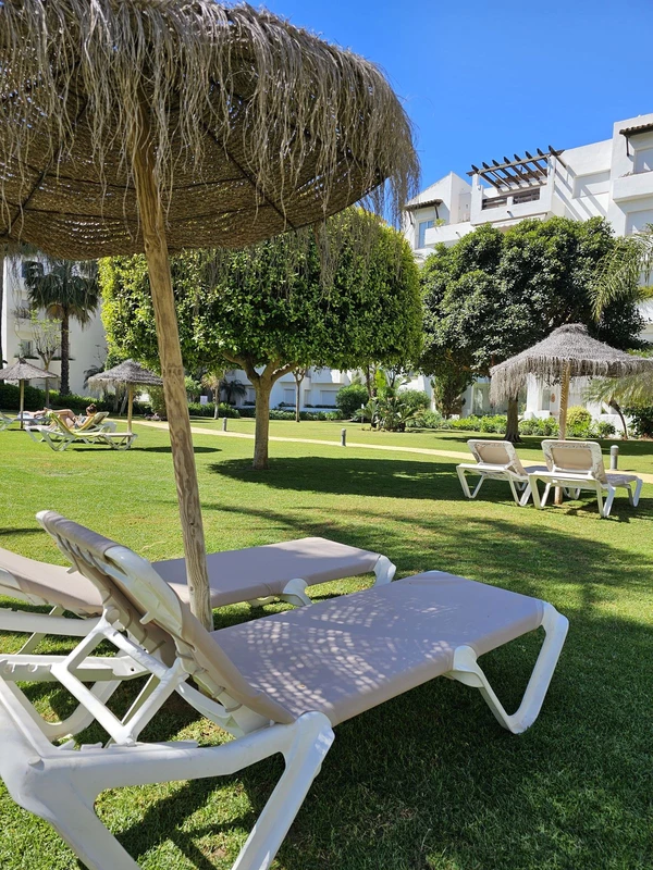 This fantastic 2- bedroom, spacious apartment is located in the famous Costalita on the New Golden Mile, within short walking distance to the beach, good restaurants, and other attractions. It's fully furnished with the highest qualities and ready to move in. The main terrace is incredibly cozy, south facing, and overlooks the magnificent tropical gardens. The apartment is bright and sunny on the ground floor.