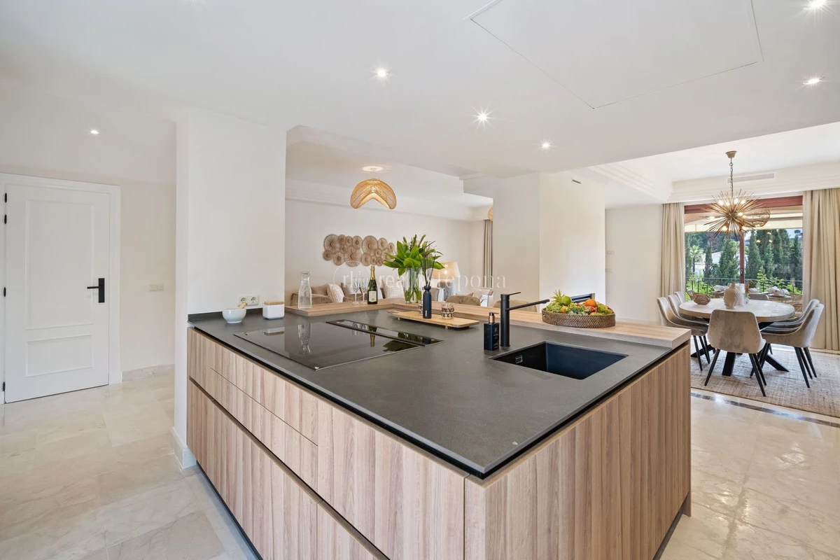 This spacious 5 bedrooms villa is situated in the gated community of Vasari Resort, Puerto Banus. Calm and very well maintained community just few steps from all the amenities and famous Puerto Banus. Perfect combination for those seeking tranquillity, but being next door to the active social life.