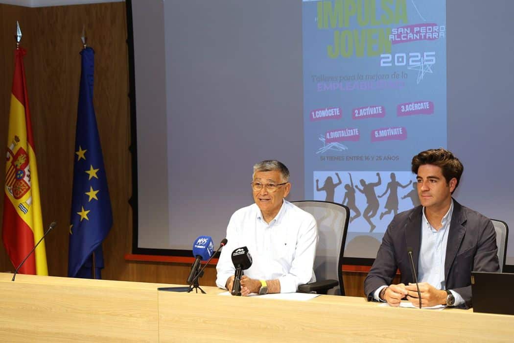 The premises of the San Pedro Alcántara Tourist Office will host five free workshops in June as part of the ‘Impulsa Joven 2025’ program to enhance employability, provide training on the entire job search process, and offer training for this group. The deputy mayor of San Pedro, Javier García, and the employment advisor, Alejandro Freijo, presented this morning the first edition of an initiative aimed at citizens aged 16 to 25, covering topics such as artificial intelligence and personal branding. García emphasized the importance of the subjects offered in this initiative, which is part of the municipal commitment to improving young people’s access to the job market. He also highlighted that they address topics that are essential tools for a population segment that is already digital natives and will help many of them access their first job.
